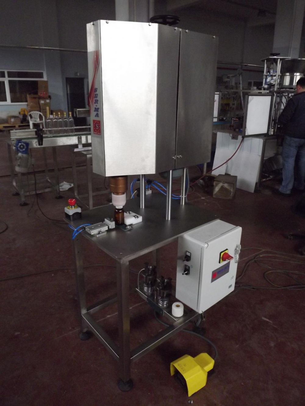 KAPAK VERME ve KAPATMA SİSTEMİ: Kapaklar, manuel (el ile) konularak, kapak kapatma kafası altına yerleştirilir.