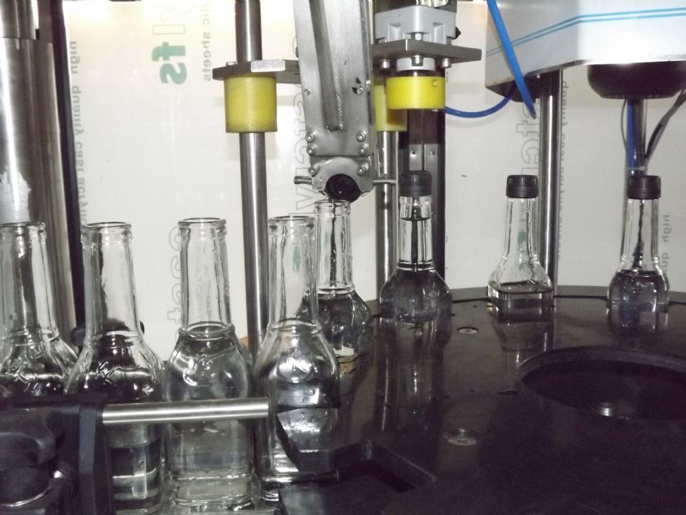 KAPAK VERME ve KAPATMA SİSTEMİ:   Çakma kapak tam otomatik olarak elevatör aracılığı ile vibratör kapak seçici içine aktarılıp kapak kanalı vasıtası ile kapak şişe üzerine oturtulur ve çakma kafası ile şişeye çakılıp kapatılır.