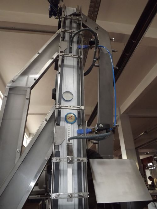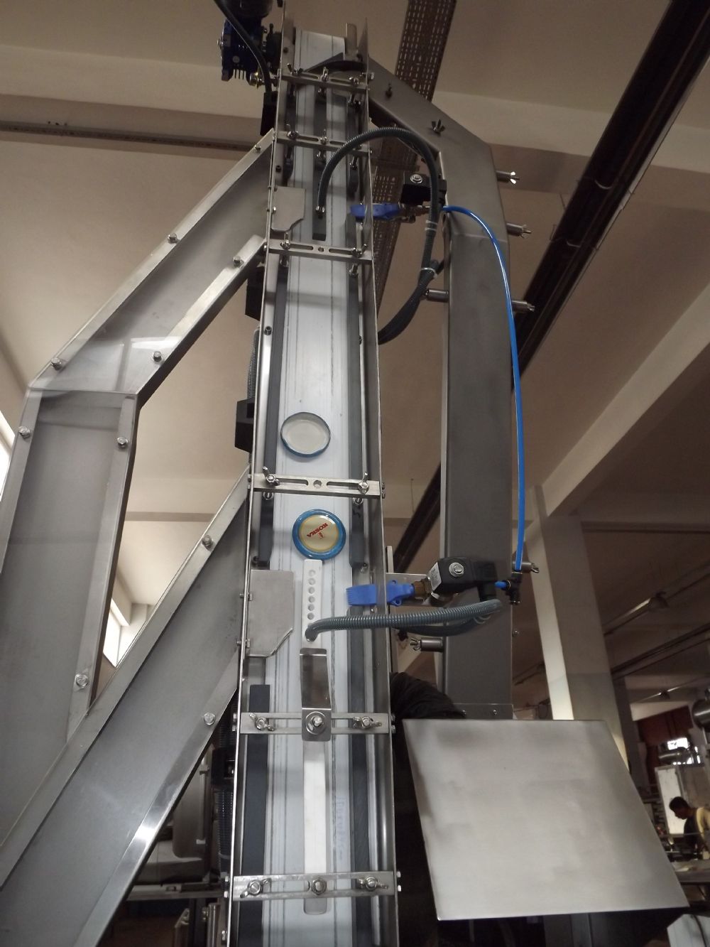 KONVEYÖRLER: AISI 304 kalite Paslanmaz çelik malzeme veya Asetal Palet kullanılarak 3000mm  konveyör ile ambalaj akışını gerçekleştirmektedir. Konveyörler üzerindeki Swichler ile ambalaj giriş çıkışları kontrolü sağlanıp, ambalaj varlığında makina çalışması,ambalaj eksiklği veya çıkış konveyorü üzerindeki birikmeler algılanarak bekleme moduna geçmesi programlanmıştır.